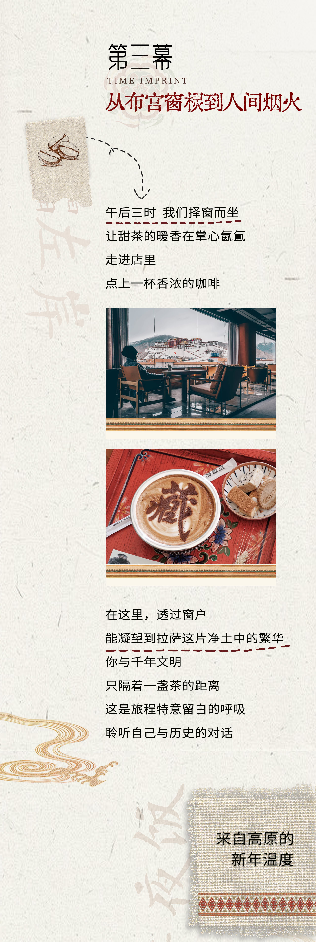 下午比较悠闲,前往布达拉宫观景咖啡馆体验当地下午茶(咖啡+甜品)拥有绝佳的观景位置,可以远眺布达拉宫,店内环境优雅,氛围舒适,是拍照打卡的绝佳地点。不过,天台的景观位有限,一定要文明排队拍照哦。
