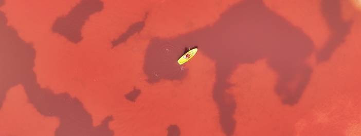 这里极度干旱、缺水,是人们对沙漠的普遍认知,沙漠也因此被称为“生命禁区”,但在巴丹吉林沙漠波浪般的曲线中,却隐藏着极为壮观的湖泊海子,数量多达114个,并且这些海子居然奇异地呈现出粉色、蓝色、黄色、绿色等五彩斑斓的颜色,像上帝打翻的调色盘坠落在了广袤的黄沙之中。