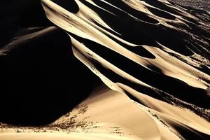巴丹吉林沙漠的沙山以高、险、陡、峻著称,世界上没有任何其他沙漠可以比肩。沙丘高大是巴丹吉林沙漠一大特征,由于受到强大的西北风、西南风影响,形成了许多特别的沙山线条,一般高达200-300米,最高达到500米,是世界沙丘最高大的沙漠。