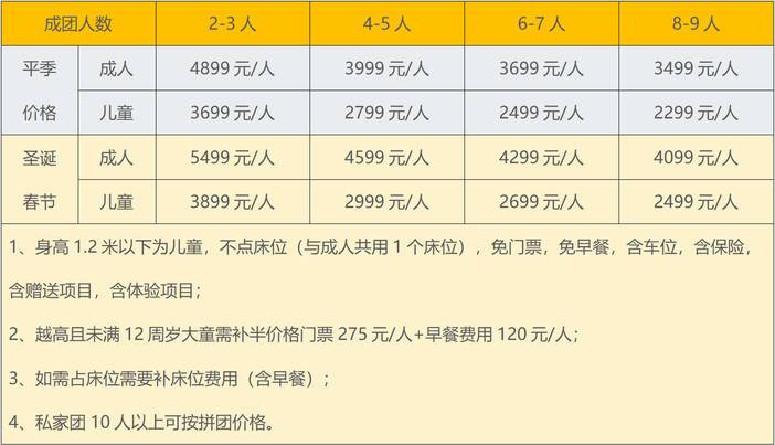 ▷越高且未满12周岁大童需补半价格门票275元/人+早餐费用120元/人;