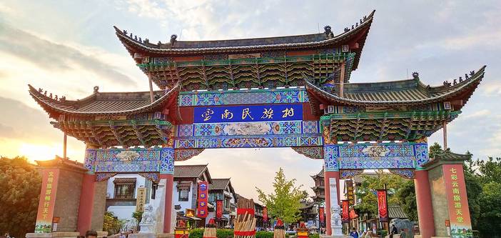 5、云南民族村,展示云南多元民族文化的主题公园,景区内复刻有云南25个少数民族的典型村寨,门票90元(学生、老人半价,1.2米以下儿童免费)。