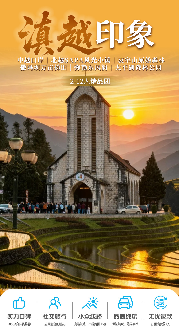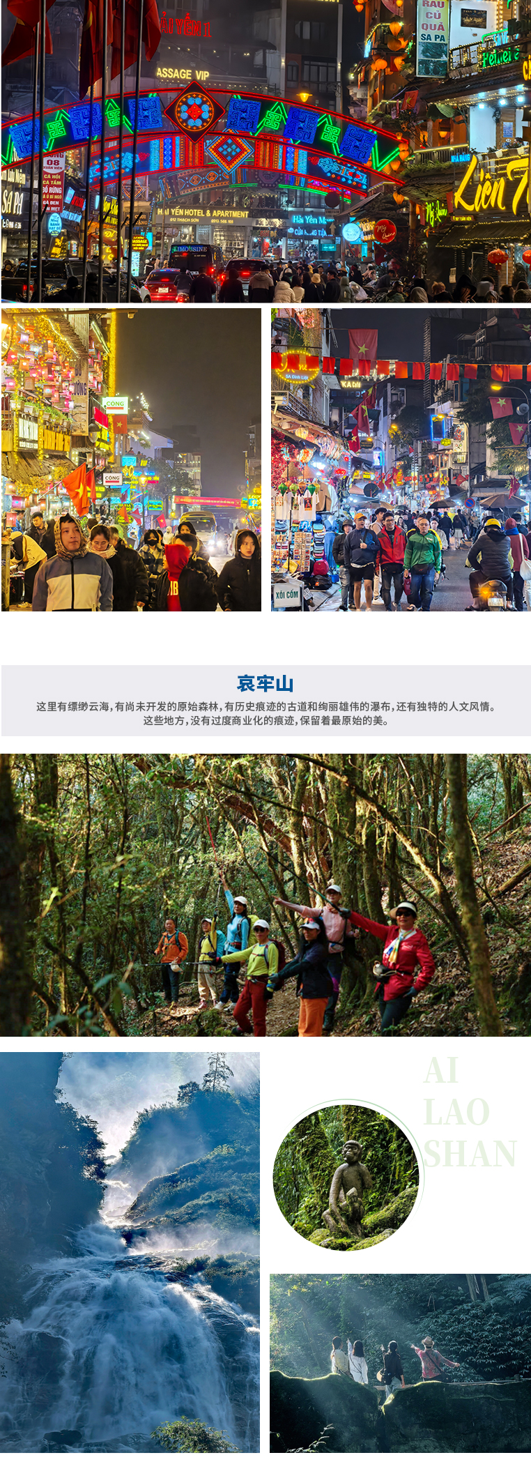 今天开始越南Sapa之旅,收拾当晚所需换洗衣物和证件等贵重物口即可,其它可寄存在酒店或旅游车上。早餐后前往中国河口口岸办理入境越南手续,随后前往参观【尚庙】,【百年大榕树】,游览【越南12 生肖像】。随后前往【102 界碑】 这里是一个不错的拍照打卡点。随后乘车前往【Sapa】,约1小时车程抵达“浪漫的Sapa法式小镇”,越南酒店须在下午2点后方可入住,抵达后先把行礼放礼放到酒店前台寄存。随后领队带领大家来一场异国风情的City walk,这里越南著名的避暑圣地,吸引着无数前来此地的欧洲背包游客。