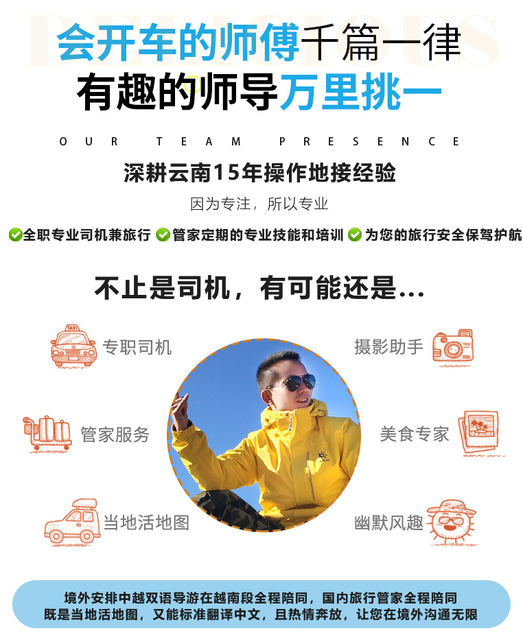 ②、境外安排中越双语导游在越南段全程陪同,国内旅行管家全程陪同,既是当地活地图,又能标准翻译中文,且热情奔放,让您在境外沟通无限。