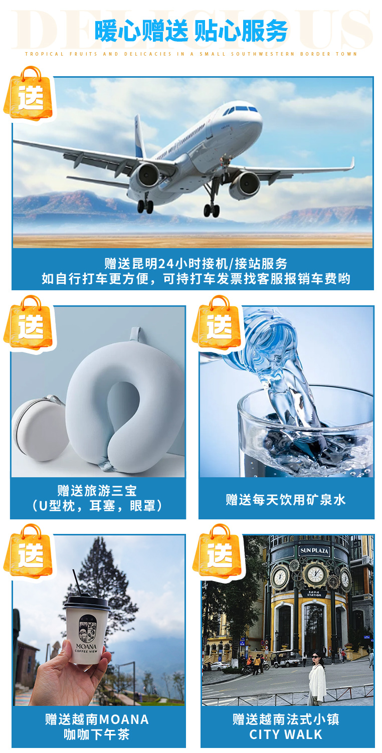 ▷其它:行程外其它一切个人自由消费项目,如景区小交通/小火车/商业演出等,越南导游小费50元/人,敬请自理;