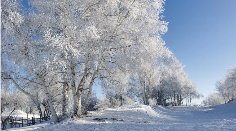 吃完早餐后,出发前往【小河头】,在期待和相机的陪伴下,迎来冬日的第一缕阳光,暖红色的朝阳洒在冰天雪地的世界上,让你忘却了早上的冷。然后在小河头、暖水河或者敖包吐寻找【最美的雾凇】,雪白的雾凇挂在奇形怪状的白桦树上,映衬在蓝天下,这里的风景已经超越了雾凇岛。