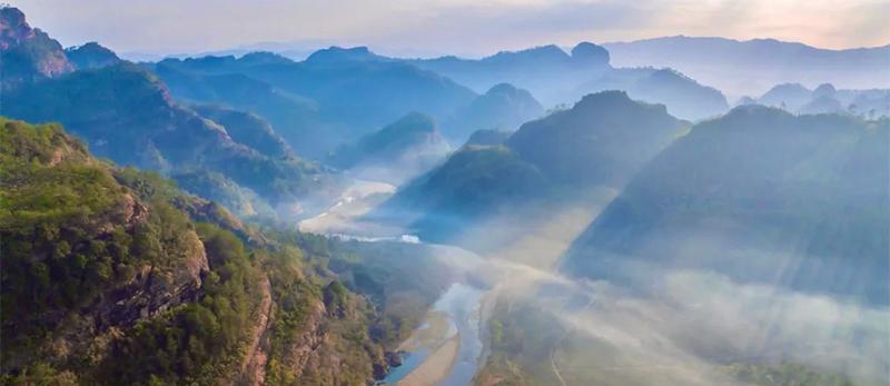 世界自然与文化双重遗产,国家5A级景区,属典型的丹霞地貌,素有“碧水丹山”、“奇秀甲东南”之美誉。武夷山第一胜景天游峰,它独出群峰,云雾弥漫,山巅四周有诸多名峰捍卫,三面有九曲溪环绕,武夷全景尽收眼底。著名旅行家徐霞客点评“其不临溪而能尽九溪之胜,此峰固应第一也”,故有“武夷第一峰”之称。