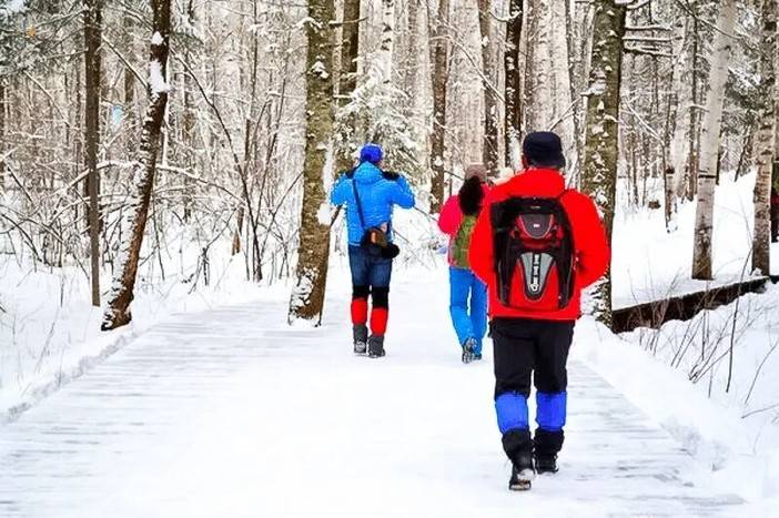 冬天一片银白的天然氧吧。沿着木栈道走,两旁都是各种笔直的树,一种东北原始森林的感觉