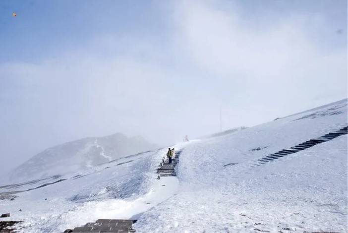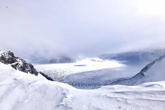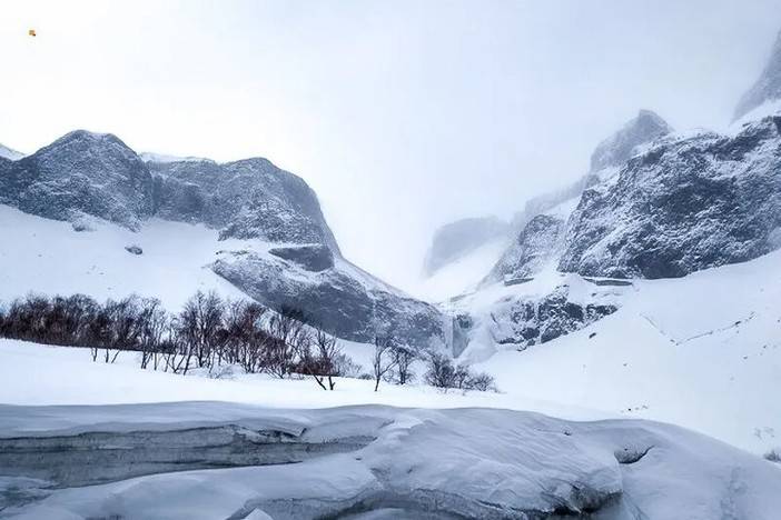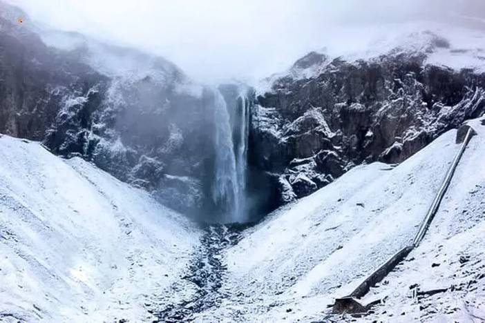 从瀑布到小天池中间的厚雪栈道穿行。体验感很棒的。这里也是电视剧《雪山飞狐》取景地