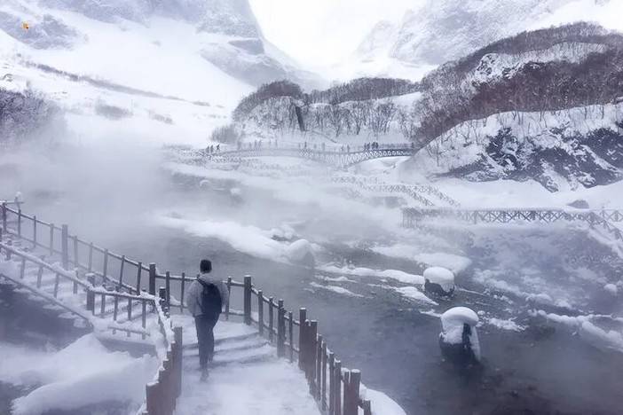冬天的长白山,带你看这神奇雪景!十里长堤,松柳银装,玉树临风,雪光岚气,云蒸霞蔚。犹如仙境之中,树干在云雾缭绕的河面上时隐时现、神秘莫测。