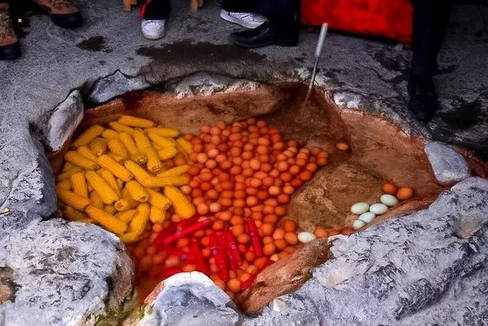 温泉煮鸡蛋,十元三个,蛋黄熟了,蛋清却还是软软的,半生不熟,嫩嫩的真的很好吃,来来来!温泉鸡蛋尝一个!