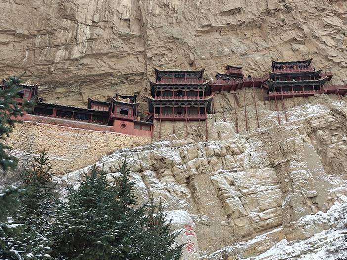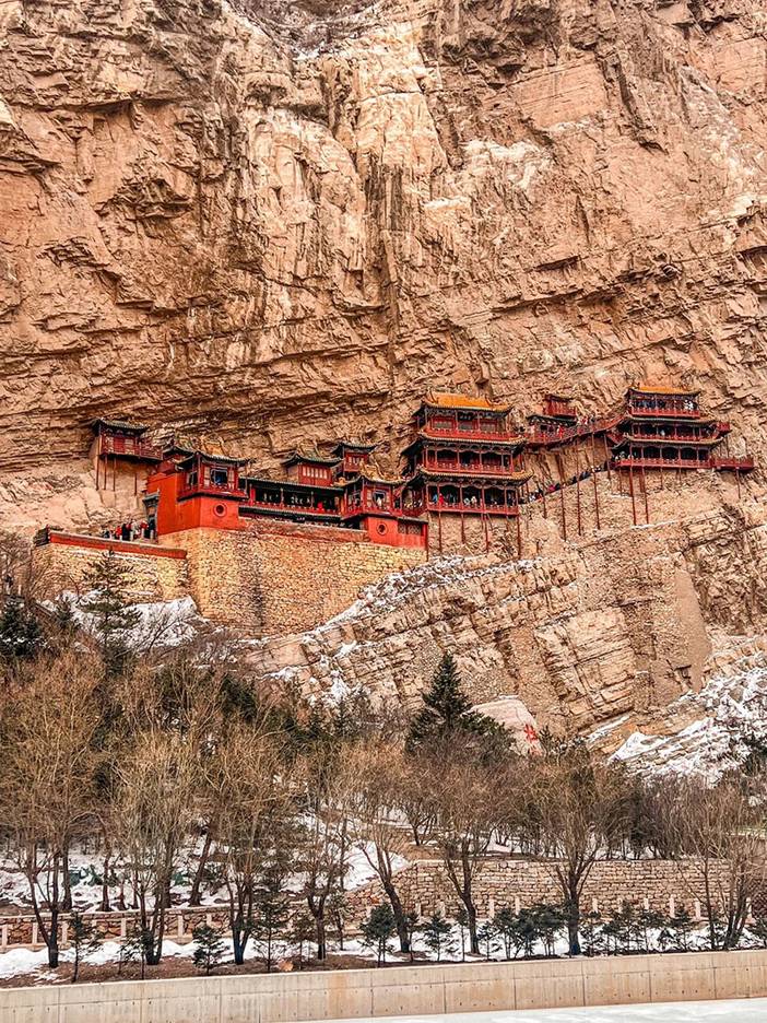 悬空寺位于山西省大同市浑源县恒山金龙峡西侧翠屏峰的峭壁间,素有“悬空寺,半天高,三根马尾空中吊”的俚语,以如临深渊的险峻而著称。建成于1400年前北魏后期,是中国仅存的佛、道、儒三教合一的独特寺庙。悬空寺就像悬挂在悬崖之上,全寺为木质框架式结构,值得惊叹的是它依靠榫接结构,嵌入崖内而不倒,距今已有1500多年历史,是国内现存最早、保存最完好的高空木构摩崖建筑,诗仙李白观后醉书壮观,徐霞客赞为天下巨观。