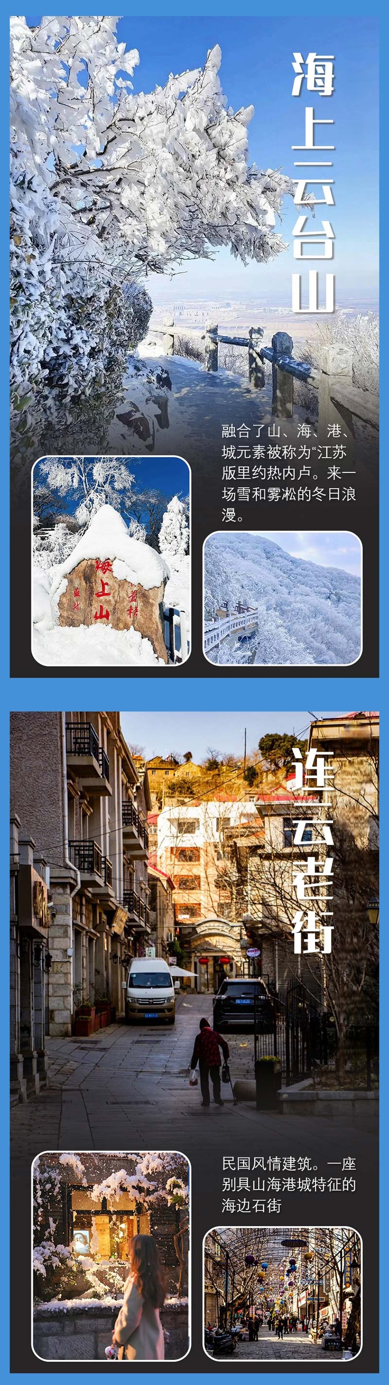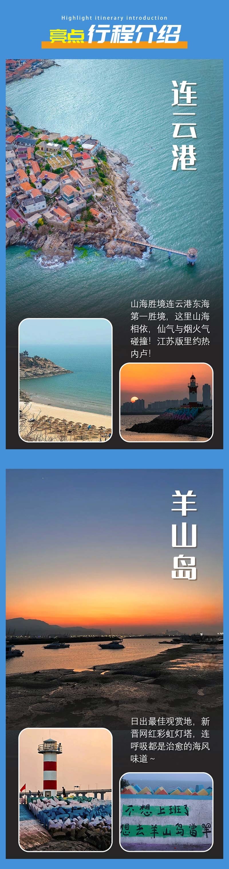 - 早餐后前往海上云台山游览,这里融合了山、海、港、城元素,被称为“江苏版里约热内卢”,冬季还有可能遇上这里绝美的雾凇奇景!