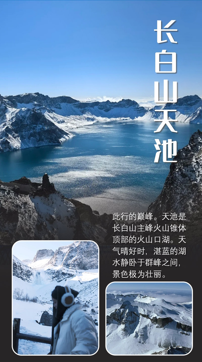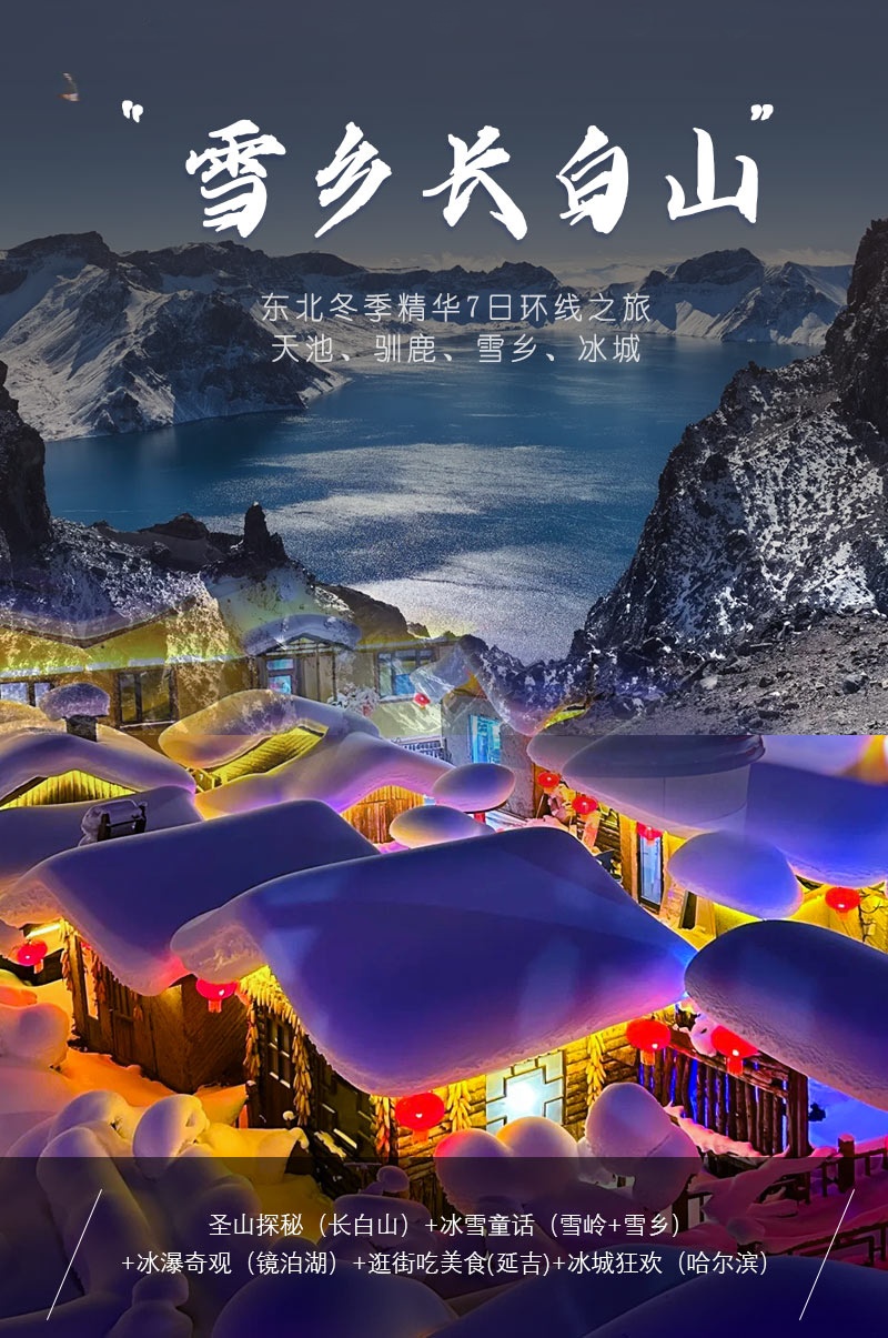 2)门票:长白山景区门票105元+小交通85元(需自行提前官方公众号预约购买),上天池倒站车自购,雪岭门票98,雪乡120元,魔界漂流80元;镜泊湖门票50元。冰雪大世界门票328元。价格供参考以实际为准;