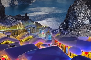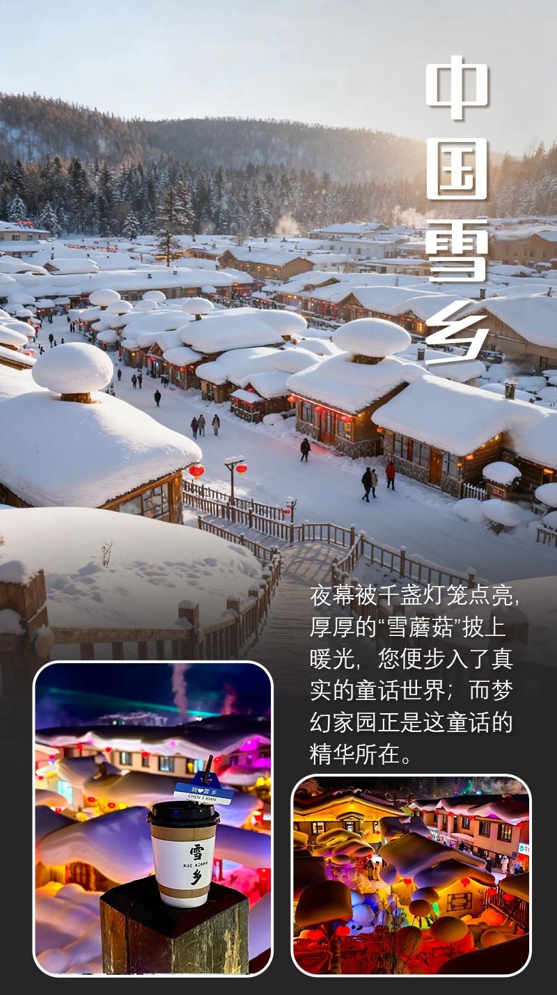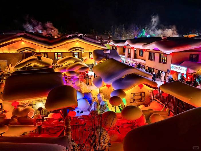 - 梦幻家园占据了雪韵大街的黄金地段,地盘极大,院子里几乎涵盖了雪的各种造型,布景更精致,还有水井、小桥等点睛之笔,能拍出些好照片。沿木栈道爬上半山腰的观景台,可以俯拍庄园和雪乡的全景。