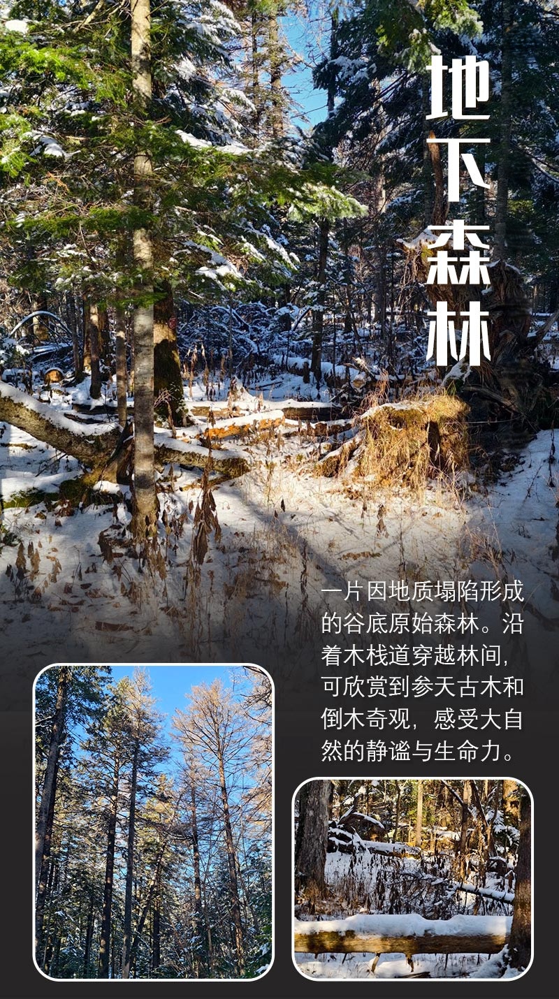 6)地下森林 冬天一片银白的天然氧吧。沿着木栈道走,两旁都是各种笔直的树,一种东北原始森林的感觉