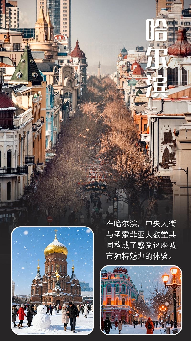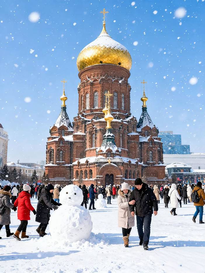- 约中午前后到达哈尔滨,到达哈尔滨后酒店办理入住,随后乘车前往哈尔滨中央大街、索非亚大教堂、品当地美食(大列巴、马迭尔冰棍、俄式西餐)。