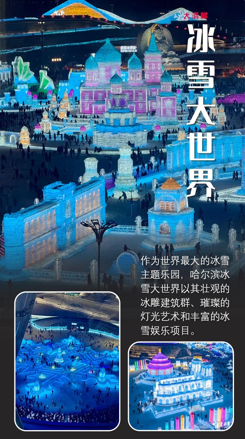 - 适时前往冰雪大世界,感受北国风情,晚上22:00哈尔滨冰雪大世界前往酒店入住。