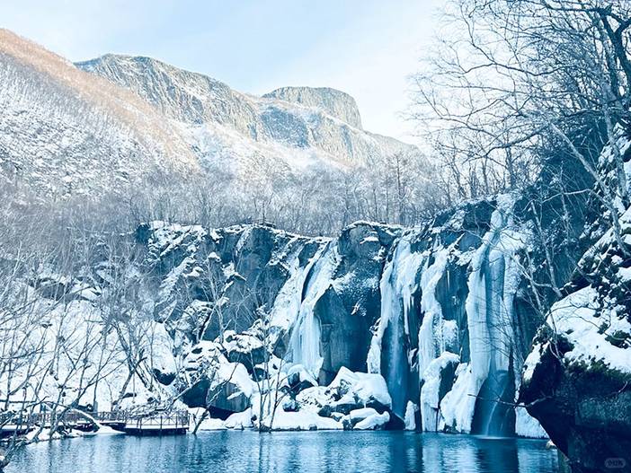 4)小天池 从瀑布到小天池中间的厚雪栈道穿行。体验感很棒的。这里也是电视剧《雪山飞狐》取景地