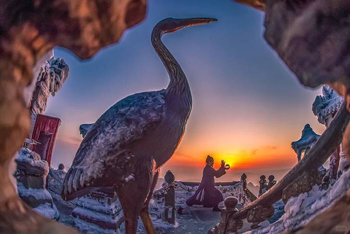 武当山,中国道教圣地,国家5A级景区,被称为“亘古无双胜境,天下第一仙山”。山上的古建筑群依山而建——紫霄宫恢弘大气,南岩宫险峻壮观,龙头香悬空绝壁,张三丰悟道古井静谧深邃,武侠气息扑面而来……这里的每一寸土地都弥漫着灵气和韵味。行至金顶时,眼前豁然开朗,这里是武当山的最高点,云雾缭绕中的金顶颇具仙侠气质,极目远眺,群山如黛,云海翻腾,令人心旷神怡,仿佛所有的烦恼都随风而去。