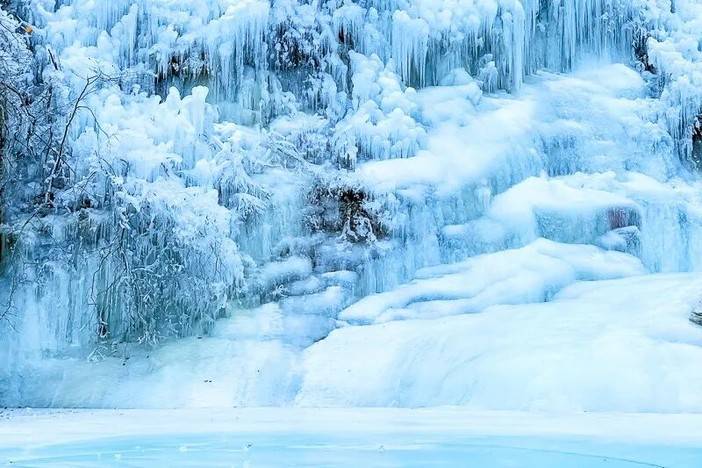 黑龙潭的三瀑十八潭里的冰,晶莹剔透