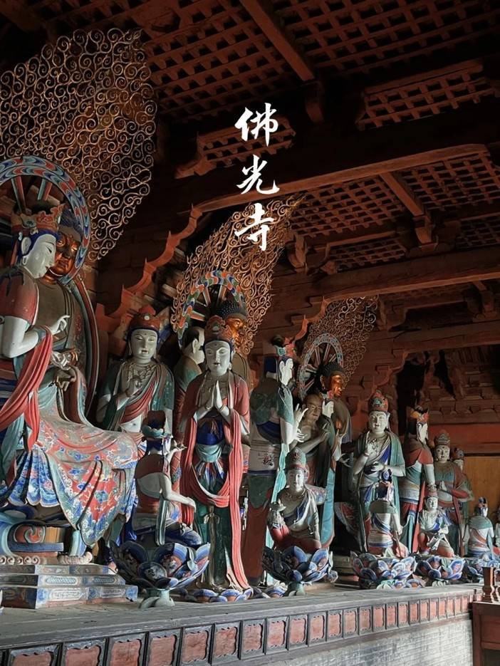 中国现存最完整的唐代木构建筑,被梁思成誉为“中国第一国宝”中国仅存的三座半唐代木构之一(另两座为五台山南禅寺、芮城广仁王庙),单檐庑殿顶,出檐深远如大鹏展翅。东大殿内35尊塑像,主佛释迦牟尼像庄严,菩萨衣带如风,典型唐风“丰腴之美”。梁思成与林徽因在1937年,他们凭敦煌壁画《五台山图》线索找到佛光寺,打破“中国无唐代木构”的日本学者论断。