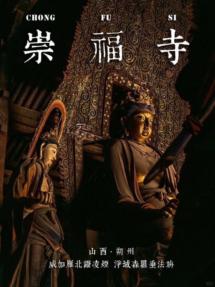 始建于唐高宗麟德二年(665年),辽代扩建,金代(1143年)重建并保存至今,距今已有1300多年历史。寺名取自“崇文尚福”,曾为辽金时期皇家祈福的重要场所。寺内核心建筑,单檐歇山顶,殿内保存金代原构彩绘壁画、塑像及雕花门窗,尤以“棂花窗”镂空雕刻技艺堪称一绝。被誉为“辽金建筑博物馆”,其弥陀殿是我国现存八大金代木构建筑之一,建筑比例与装饰工艺代表当时最高水平。壁画、雕刻、匾额(如金代“弥陀殿”匾)等保存完好,为研究辽金宗教艺术提供珍贵实物。