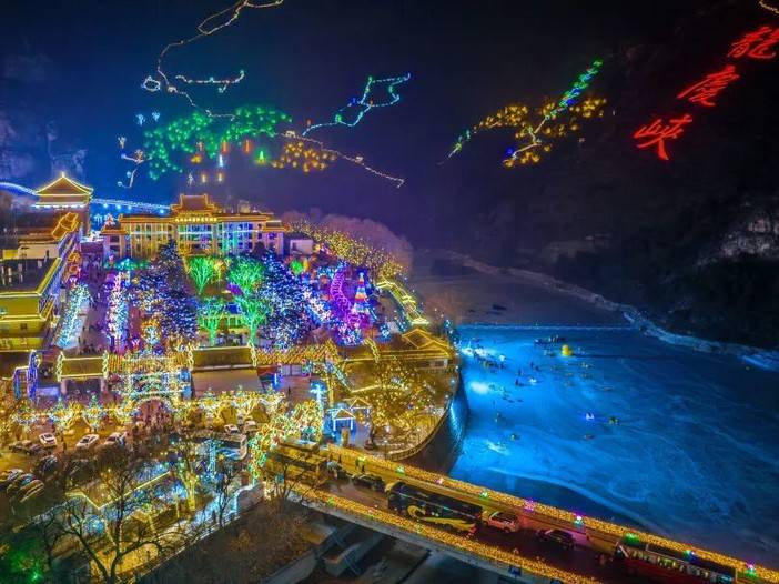 本届冰灯艺术节在规模与体验上实现全面升级,整体规划面积达50万平方米,其中花灯与冰灯展区占地20万平方米,与30万平方米的天然冰川峡谷景观相互映衬,构建出瑰丽奇幻的冰雪童话世界。冰灯展区将《大闹天宫》奇幻世界完整搬进冰雪峡谷,构筑起“灵猴现世”“龙宫借宝”“大闹天宫”“马上封侯”四大展区组成的完整故事线,20余组大型主题冰建筑与150余件精美冰雕作品精准还原经典场景。在花灯展区,18组大型主题灯组搭配180件精巧小型花灯错落分布,以生肖贺岁、神话传说、吉祥寓意为主线,《四龙戏珠》《百鸟朝凤》《龙凤呈祥》《丛林派对》等一组组流光溢彩的灯组,将浓厚的喜庆年味洒满峡谷。