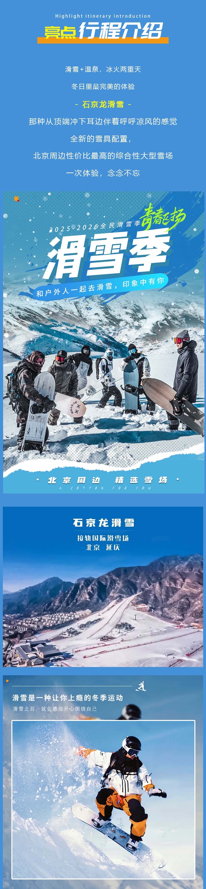 D1|北京-石京龙滑雪-龙庆峡冰灯-龙脉或附近(宿)