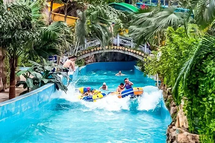 分为南、中、北三大区域。南区为风情养生区,热带植物茂盛;500米回旋形漂流河道围成一个椭圆形的热带风情岛,等待着勇敢者们的体验、挑战;中区是温泉高温体验区,水温依次从低到高,游客可以根据自己的体感逐一享受;北区是温泉理疗区。