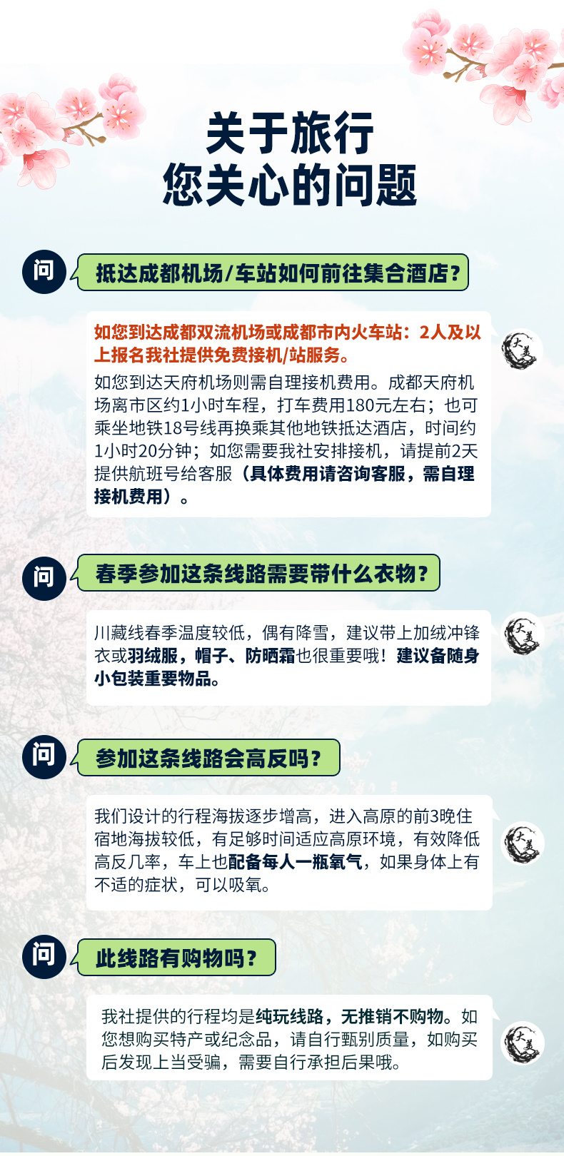 6、2人及以上报名赠成都双流机场接机/市内火车站接站(成都东站、成都南站、成都西站)1次,天府机场接机需自理费用。