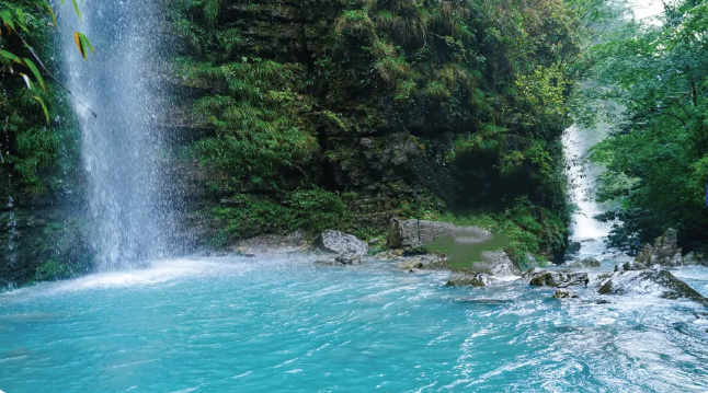 早餐后前往探访深藏于龙里山谷的猴子沟。徒步始于幽静古道,沿着湛蓝如染的河谷行进,水声潺潺相伴。双龙瀑布跃然眼前,双瀑并流,气势清灵。而此行的点睛之笔,是那一潭被誉为 “蓝眼泪” 的瑶池秘境——矿物质将池水染成梦幻的蒂芙尼蓝,清澈见底,美得不似人间。