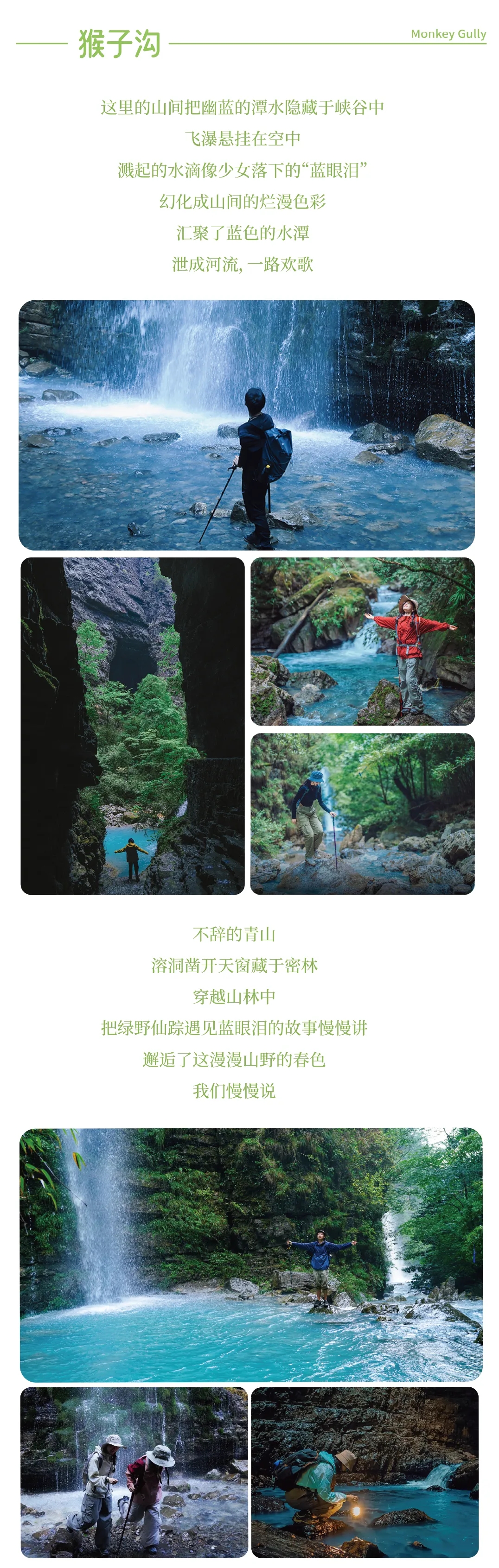 ① 今天的徒步路程约11公里,累计爬升约450米(下降约250米),以峡谷、溪流、瀑布风为主,需要走山路、峡谷河床和走一些机耕道。在3-10月时需涉水,需带一双溯溪鞋或可更换的鞋子以及多备一套衣服可以更换。