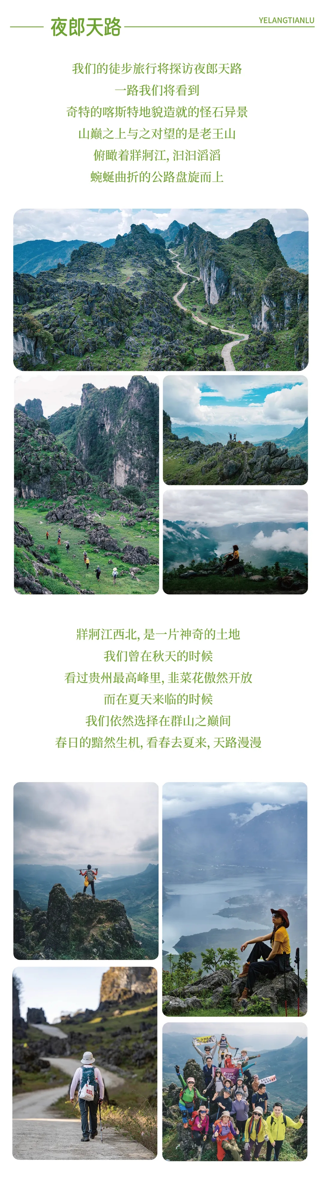 ②关岭冰臼河谷徒步约7公里,预计耗时4-5小时,累计爬升约200米,下降约150米;花江峡谷山脊徒步约9公里,预计耗时4-5小时,累计爬升约300米,下降约200米。