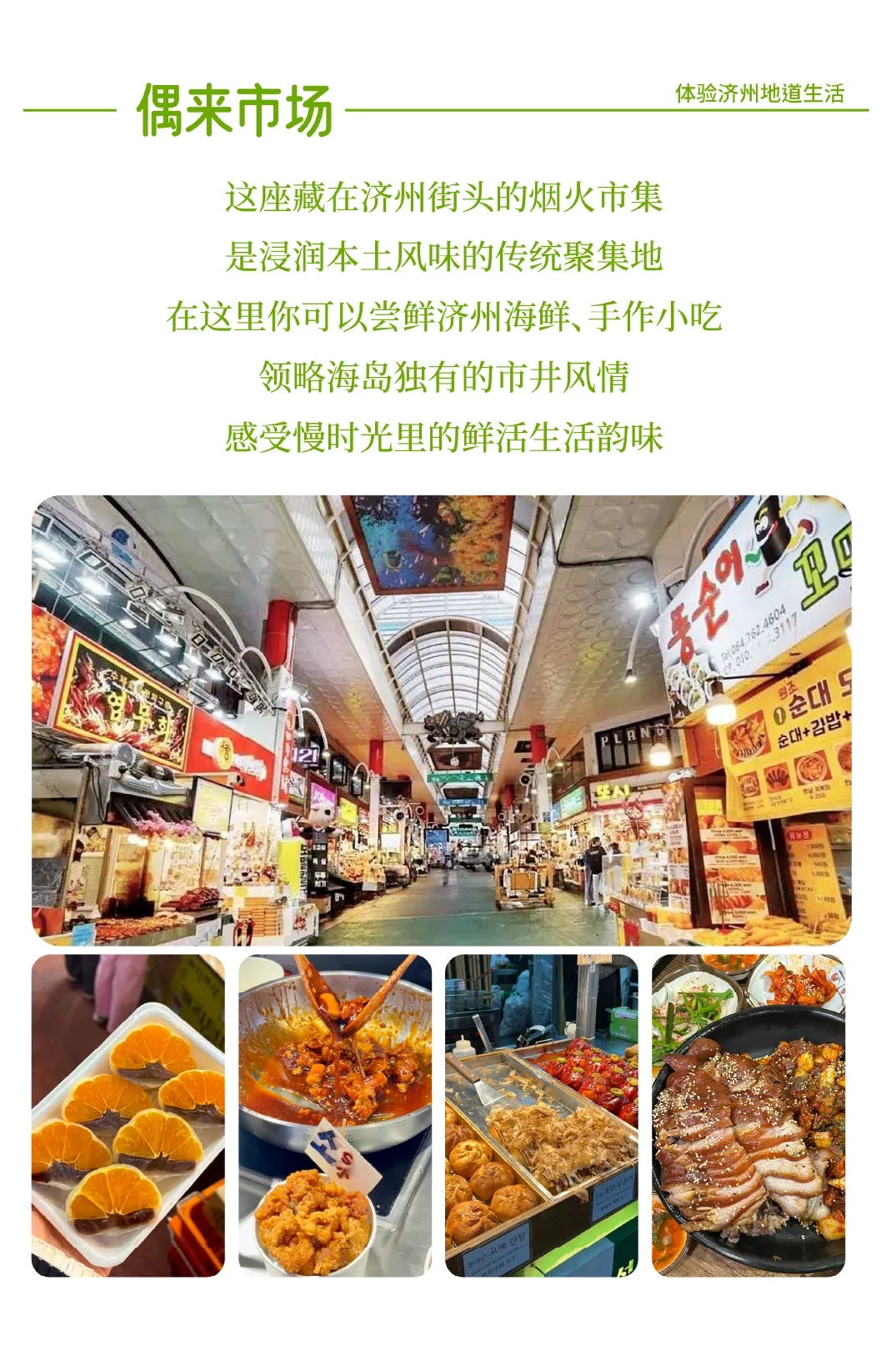 随后前往西归浦入住,晚上一定要去偶来市场转转。西归浦每日偶来市场是西归浦历史最悠久、最大的市场,可以享受到很多小吃。
