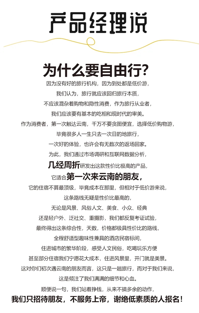 ▷交通:不包含各地到达丽江集散的往返大交通费用(如:机票和高铁火车票等,提前预定通常折扣都会很低);