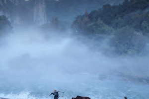 九曲练溪,十里画廊,山水飘逸,云雾缭绕。