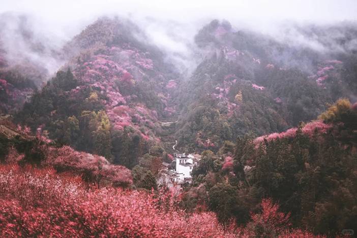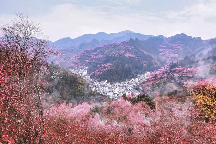 - 早餐后,我们前往『卖花渔村』游览。我们拾级而上,徒步到山中,更是视野广阔,白墙黑瓦的村落,被粉色、红色的梅林所围绕,成了中国立体山水画,美不胜收!