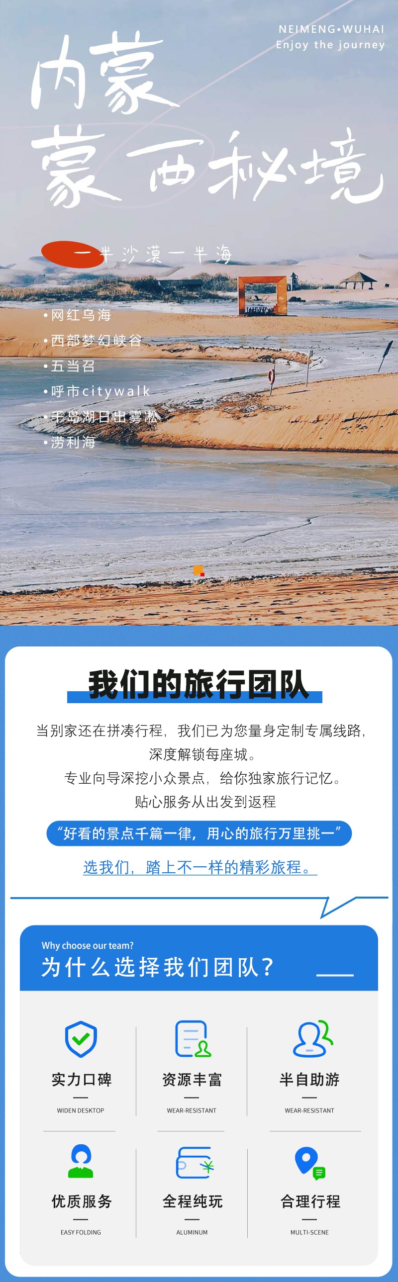 2)门票:西部梦幻峡谷门票60元+摆渡车15元,乌海湖68元(含往返摆渡车+网红枯树门票+网红公路打卡),五当召52元,呼市各景点有免费的有收费根据自身需求自行购买即可;其他景点暂无门票费用,如遇临时收费自理。门票价格供参考,以景区实际政策为准;
