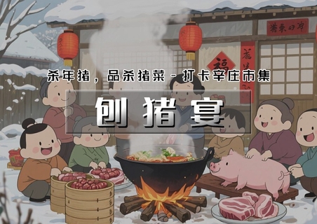 - 中午|大家可以亲自动手切菜、烧火等,一起烹饪美味的杀猪菜,品尝农场杀猪菜。刨猪宴不只是一顿饭,更是一份乡愁、一种情怀!