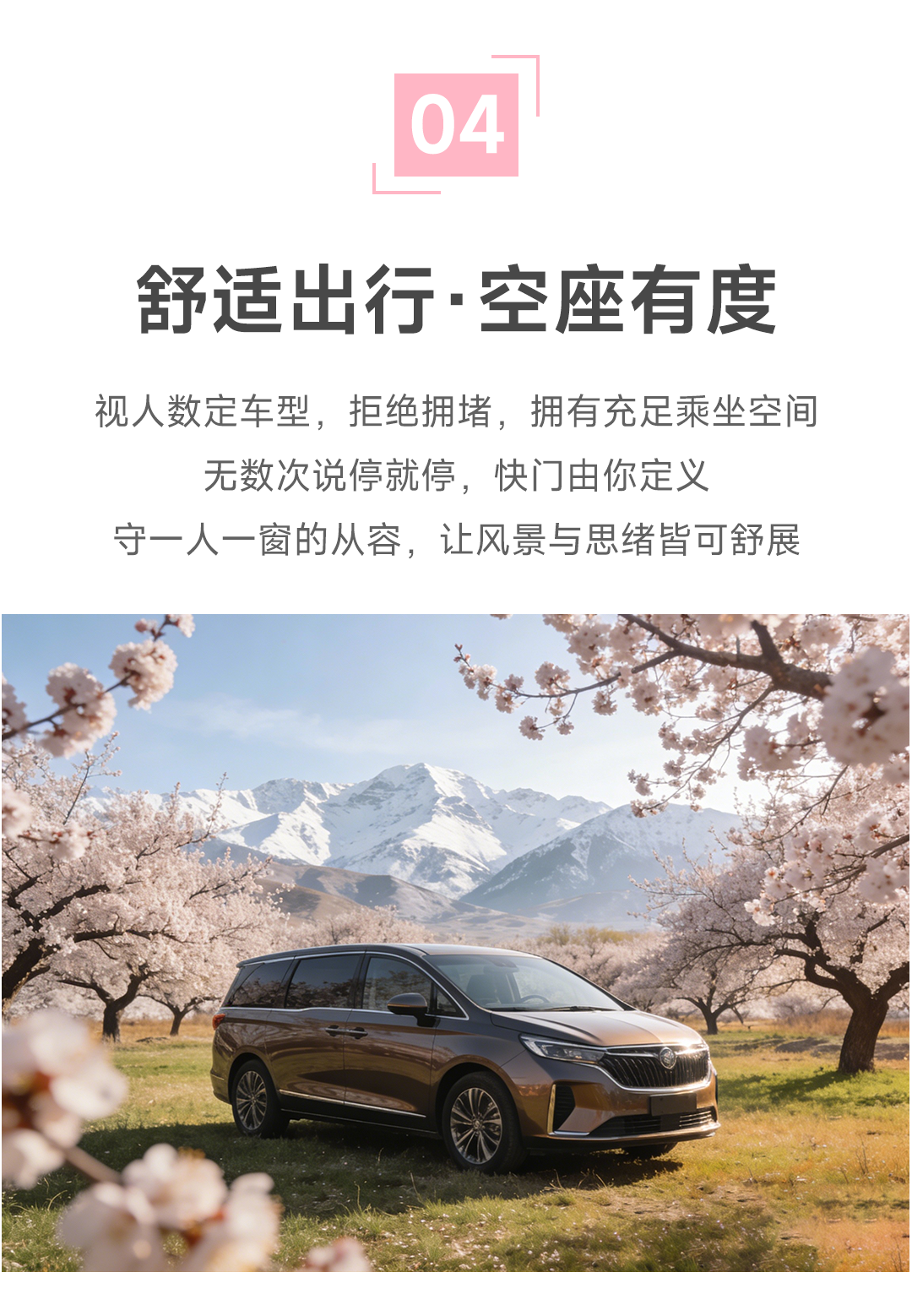 2.全程根据人数安排车型:本团为散拼行程,保证1人1座,不接受指定车型,车上座位轮流坐:
