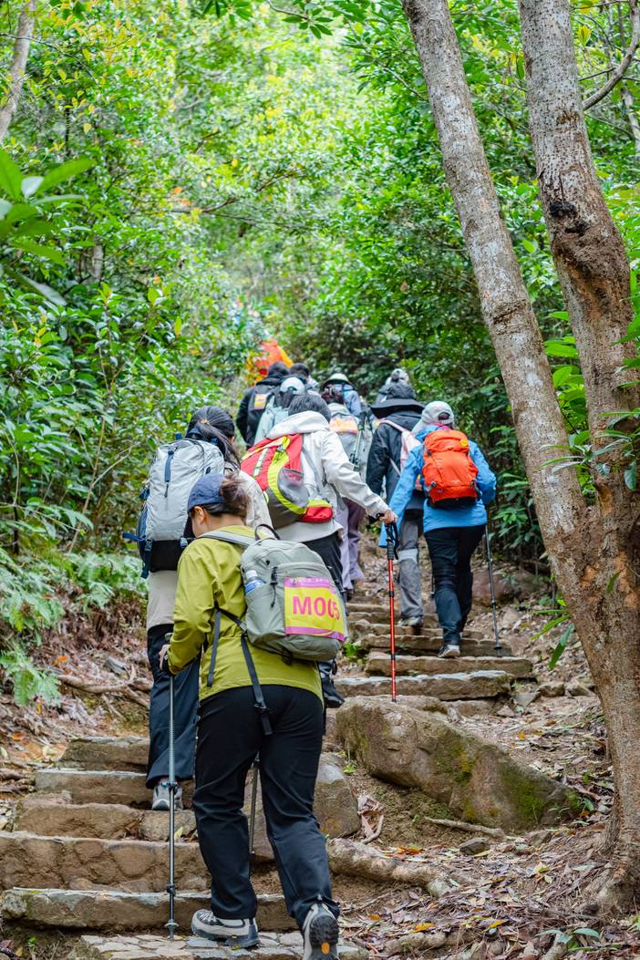 08:30 领队带领热身后开始徒步,今天挑战6、7、8段,也是香港的一条越野跑拉练线路之一的“针草帽”,也是较为辛苦